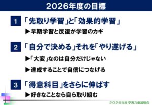 後半では、2026年度(新学年)での目標・東進での勉強の仕方について話をしました。
